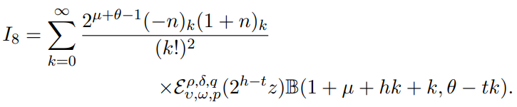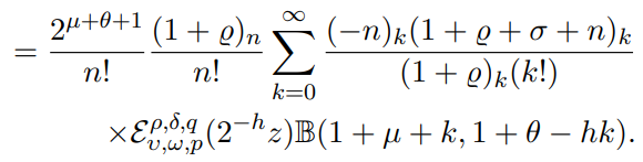 THEOREM 9. If p, q > 0 z, υ, ω, ρ, δ, ∈ C, ℜ(υ) > 0, ℜ(ω) > 0, ℜ(ρ) > 0, ℜ(δ) > 0 and h > 0 ℜ(µ) = 0, 1, 2 . . . then