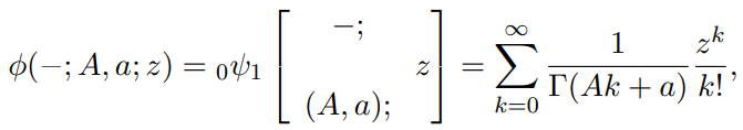 with complex z, a ∈ C and real A ∈ R. When A = η, a = ν + 1 and z is replaced by −z, then the function ϕ(η, ν + 1; −z) is defined by