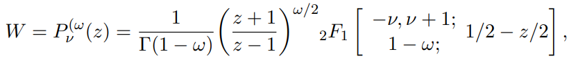 The function is known as the Legendre function of the first kind (Erdelyi et al, 1953a). It is one valued and regular on the z−plane, supposed cut along the real axis from 1 to −∞.