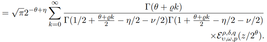 THEOREM 8. If p, q > 0 z, υ, ω, ρ, δ, ∈ C, ℜ(υ) > 0, ℜ(ω) > 0, ℜ(ρ) > 0, ℜ(δ) > 0 and θ > 0 and η is a positive integer then