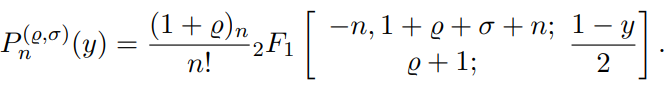 When ϱ = σ = 0, the polynomial in (6) becomes the Legendre polynomial (Rainville, 1960). From (6), it follows that is a polynomial of the degree n and that