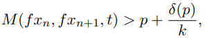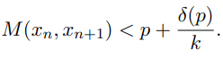 Since limn→+∞ M(xn, xn+1) = p, we can find n0 such that when n > n0,