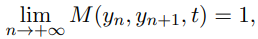 i. e. M(yn, yn+1, t) > p + , which contradicts the fact that limn→+∞ M(yn, yn+1, t) = p. Therefore, limn→+∞ M(yn, yn+1, t) = 1.