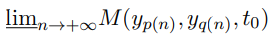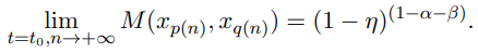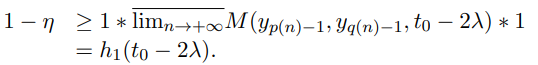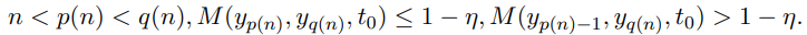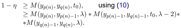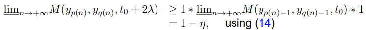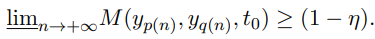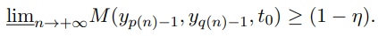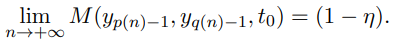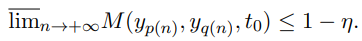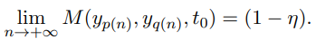 STEP 3 In this step, we show that limn→+∞ M(yp(n) , yq(n) , t0) = 1 − η. From equation (10) we have