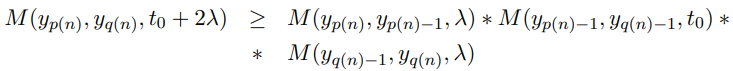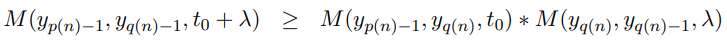 STEP 2: In this step, we show that limn→∞ M(yp(n)−1 , yq(n)−1 , t0) = 1 − η. Now for all n ≥ 1, 0 < λ < t0/2, we obtain,