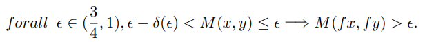 Therefore, the inequality ϵ− < M(x, y) ≤ ϵ gives