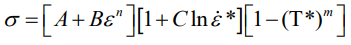 where A, B, C, n, and m are the material parameters determined from experimental data. The temperature is determined from equation 2.