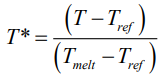 where Tref is the temperature below which material shows no temperature dependence on flow stress. The strain rate is given by equation 3.