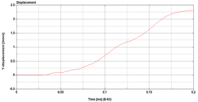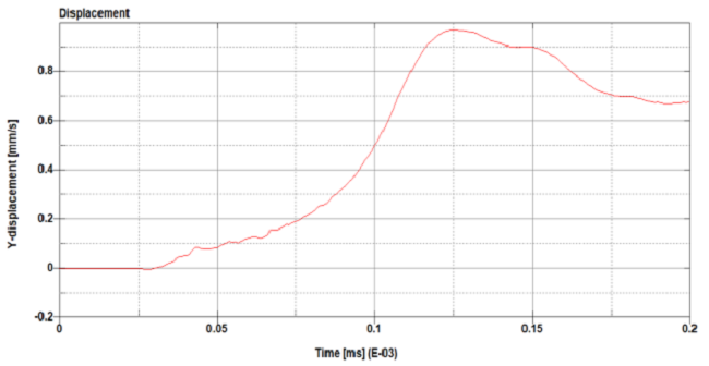 The displacement of the armor plate after the impact and limit perforation is shown on the diagram in Figure 23. The first displacements occur after 0.03 ms.