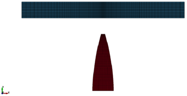 A two-dimensional finite element model of the armor plate and the bullet core was developed as shown in Figure 2.