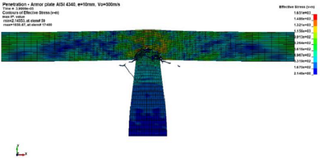 The penetration, damage, and failure mechanisms when the projectile impacts the armor plate were investigated using a computational model based on finite elements (Jena et al, 2019). Theoretical models are used in simulations with real material properties (projectiles and armor plates) to show how the projectile interacts with the armor plate. LS-DYNA (Livermore Software Technology, 2014), a commercially available finite element software, was used for finite element modeling and analysis (Mahfuz et al, 1999).