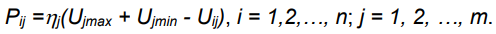 In Eq. (1), Uij is the jth performance utility index of the ith candidate scheme; Pijrepresents the partial preferable probability of the beneficial performance utility indicator Uij; n is the total number of candidate schemes in the scheme group involved; m is the total number of performance utility indicators of each candidate scheme in the group; and is the normalized factor of the jth performance indicator.