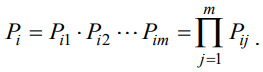 Moreover, according to probability theory (Zheng et al, 2021), the total / comprehensive preferable probability of the ith candidate scheme is the product of its partial preferable probability Pij of each performance utility indicator in the optimization, i.e.,