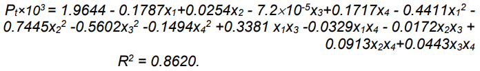 Furthermore, the regression of the data in Table 2 can be used to conduct profound optimization. Eq. (6) is the regressed formula of the total preferable probability Pt vs the input variables, x1, x2, x3,and x4.