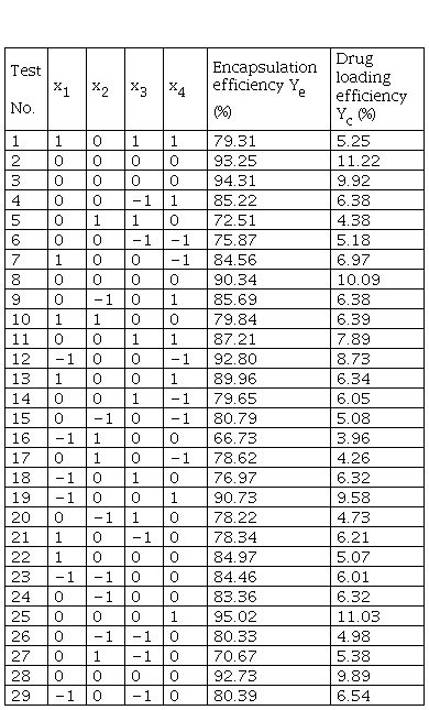 Table 2 indicates that experiments 2 and 25 are the appropriate schemes with the highest total partial probability for the preparation of the encapsulation composite of water-soluble chitosan / poly-gama-glutamic acid - tanshinone IIA with a response surface design comparatively.