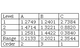 From Table 5, the optimal composite is C1A2B3, which is the same as the first glanced rank 1 of test No. 6 in Table 4 luckily.