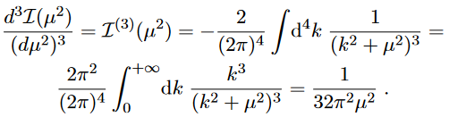 which as it stands is terribly divergent at infinity, faster than a fourth power. However, if we derive three times with respect to μ2 we obtain a finite function,