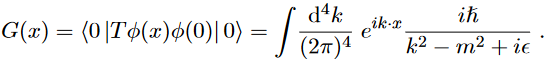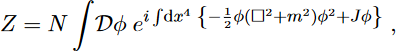where □ = ∂μ∂μ is the d’Alembert operator, with a plane wave solutionφ(x, t) = ei(ωt−⃗ k·⃗x ) and a dispersion relation Before writing the amplitude, it is customary to add a term like J(x)φ(x) in the Lagrangian,where J(x) is the so-called source function whose actual form is not relevant, provided integrals are convergent, as will be clear later. We have