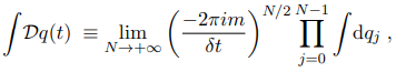 where q0≡qI and qN≡qF. We can now go to the continuum limit, that is, δt → 0 or N → +∞, so we can replace [(qj+1−qj)/δt]2 with q2 and sums with integrals.