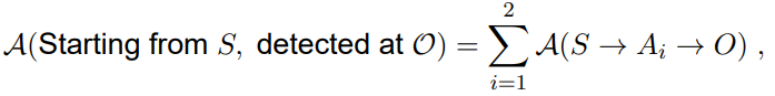 Suppose to create a Gedankenexperiment inspired by the original Young’s two slit diffraction experiment (Feynman & Hibbs, 1965). A source S emits non classical particles (for instance, electrons) that end on a detector sited in O. In between, there is a screen with two slits, A1 and A2. The source emits particles at the time t = 0 that are detected at the time t = T. From quantum mechanics, we know that because of the superposition principle, the amplitude of particle detection is obtained by summing over all possible amplitudes, that is, the amplitude of traveling through the slit A1 to O, and the amplitude of traveling through the slit A2, namely