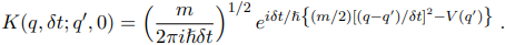 where K is the evolution amplitude with proper normalisation, as |ψ|2 = 1. From eq. (10), we have the explicit form for a propagation amplitude between two points, so restoring ℏ we can write