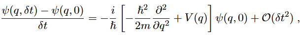 After moving the first term ψ(q, 0) to lhs and dividing it by δt, we obtain