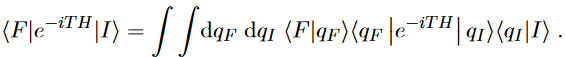Instead of dealing with fixed initial and final positions qI and qF we are often faced with specifying more general initial and final states |I⟩ and |F ⟩. Then we are interested in calculating ⟨F|e−iTH|I⟩, that can be obtained from eq. (13) by inserting two complete sets of states