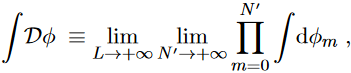 and by denoting the coordinate as xm=mδx, with φ(xm)=φm for 0≤m≤N′ we can define the functional integral over the field φ like: