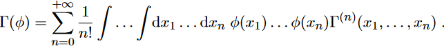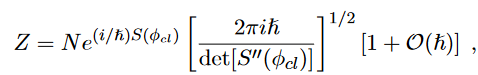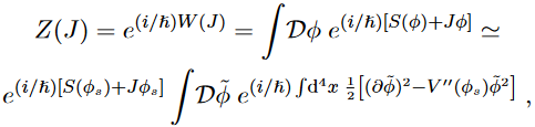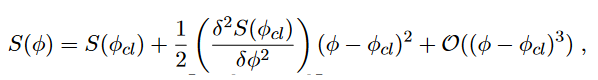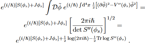 where the linear term is missing by definition because the action is stationary. By plugging this result back into eq. (28) we have, yet another time, a Gaussian integral in infinite dimensions that can be solved with the aid of eq. (60) of (Fabiano, 2021a):