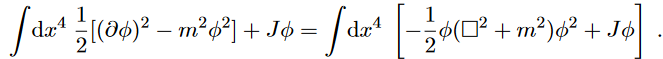 Writing the explicit form of the Lagrangian of (eq. 81) and integrating by parts the kinetic term, that is, ∫d4x ∂μφ∂μφ=−∫d4xφ∂2φ yields