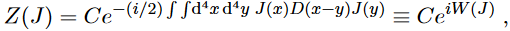 where D(x − y) obeys eq. (40). The overall normalisation factor C clearly does not depend on J, but on the determinant of D which has no interest.Observe that C = Z(J = 0) so that