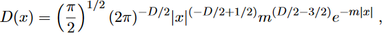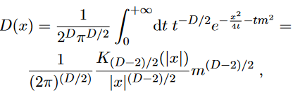 where Kν (x) is a Bessel function. For a half integer argument, Bessel functions reduce to elementary functions, for example in D = 1