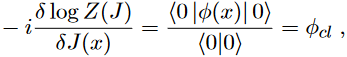that is, the classical field, defined as the vacuum expectation value (VEV) of the quantum field, could be obtained by deriving the generator of connected graphs W with respect to the source field J.