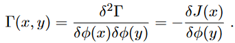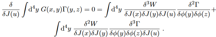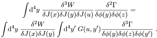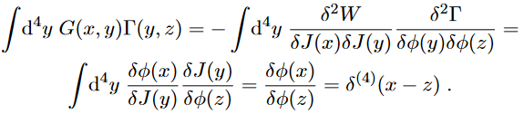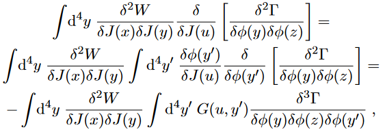 To summarise, every derivative of Γ with respect to J could be swapped with a derivative in φ and an integration with the Green function G, that is,