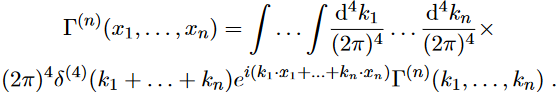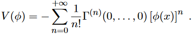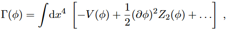 where Z2(φ) is the wave function renormalisation, see eq. (14) of (Fabiano,2021b). The term without derivatives, V (φ), is called effective potential. To express it in terms of 1PI Green functions, we have to write Γ(n) in momentum space: