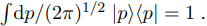 Since the spaces q and p are connected via a Fourier transformation, they have the property that ⟨q|p⟩ = eipq, ⟨p|q⟩ = e−ipq, and the p space is complete as well as the q space: