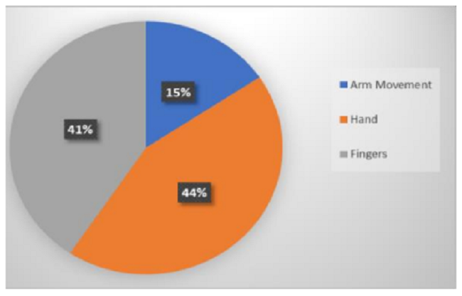 Both human hands have four fingers and a thumb each. The fingers have two main moves: flexion and extension. The flex movement is mainly for grasping, while extension is for reaching things. Due to flexion, several modes can be made, i.e. bending, making a fist, gripping, grasping and folding fingers. On the other hand, the extension of fingers includes the following modes: pointing, stretching out, and spreading out.