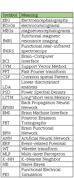 Electroencephalography (EEG) is the most common brain signal that has been utilized in brain-machine interface applications. This popularity is due to several facts: EEG signals are non-invasive, low cost, compatible, portable and have a high temporal resolution in comparison with other brainwave measurements such as electrocorticograms (ECoGs), magnetoencephalograms (MEGs), functional magnetic resonance imaging (fMRI) and near-infrared spectroscopy (fNIRS).