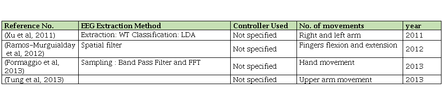 Keywords: EEG, BCI, comprehensive study, prosthetic arms, controllers.