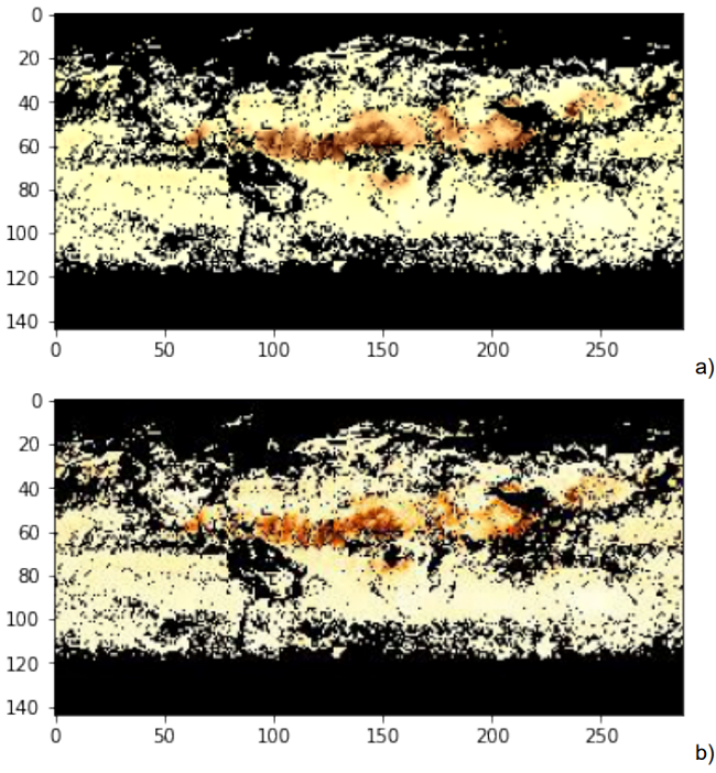 The input data set was MODAL2_E_AER_OD, a set of PNG satellite retrieved images from 2000-02-18 to 2021-09-14 on every 8 days (993 snapshots in PNG format with 3600x1800 pixels resolution). The images were resized to 288x144 pixels (hardware could not support original resolution of images), converted to JPG, normalized by dividing with 255 and stored in the NumPy array with a sequence of 10 frames. MODAL2_E_AER_OD data set was split on train and test subsets. The train/test ratio during the testing phase was 70/30, 80/20 and 90/10. The optimum was achieved with the 80/20 train/test split.