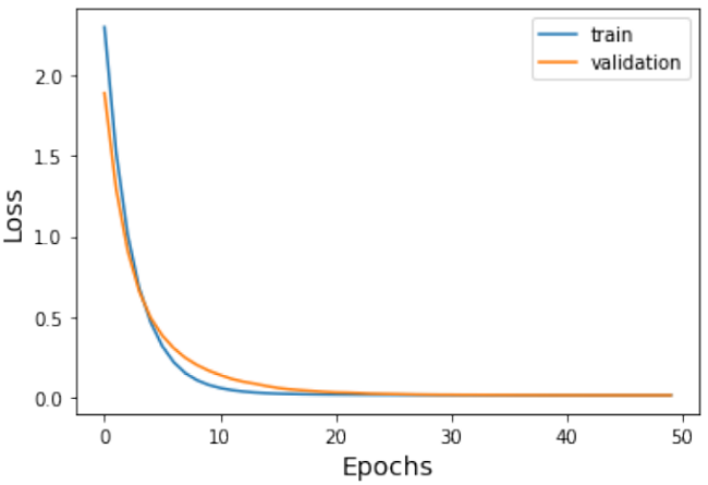 The evaluation of the DL model is based on the evaluation metrics i.e. MSE=0.0116. The MSE is always positive regardless of the sign of the predicted and actual values and a perfect value is 0.0 while the range is from zero to infinity. These results prove that the proposed ML model can be used for AOT forecasts. Figure 4 shows the line plots of loss over 50 training epochs.