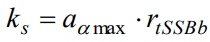 The maximum value of ks depends on the antenna radiation pattern attenuation at the αmax angle (aαmax) where the SSB signal has the maximum attenuation and the ratio of the traffic signal beam amplitude and the SSB signal beam amplitude (rtSSBb), i.e. their values at the angle 00 of the radiation pattern. Or, in other words,