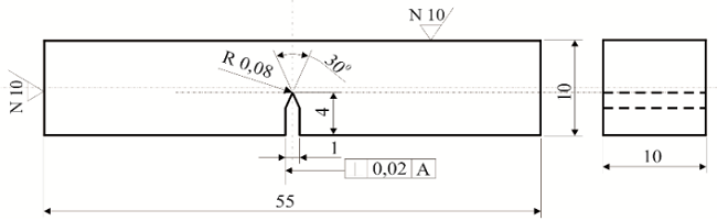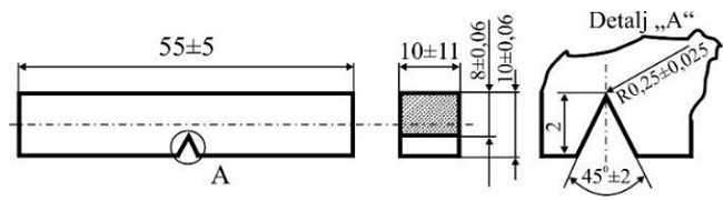 Слика 3 – Стандардна епрувета за испитивање ударне жилавости