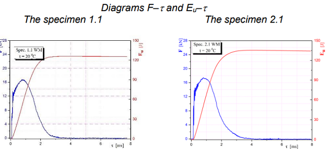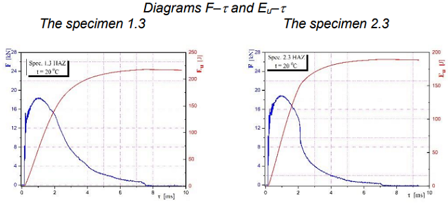 Рис. 6 – Диаграммы ударных испытаний образцов с надрезом в ЗТВ