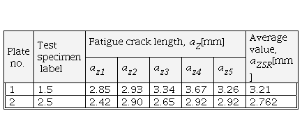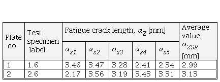 The obtained critical crack lengths are adequate to the obtained KIc values, so the highest value is for plate 2, and a slightly smaller one for plate 1. It can be concluded, based on the values of the critical crack lengths and fatigue crack lengths for the test specimens with a notch in the metal seam, that the best characteristics in the presence of a crack-type defect will be shown by plate 2 followed closely by plate 1.