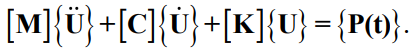 In Eq. (1), the notations [M], [C] and [K] are the matrices of consistent mass, damping and stiffness of the system. The notations {Ü}, {} and {U} are the acceleration, velocity and displacement vectors of the system. The notation {P(t)} represents the vector of external forces in the nodes of the system. For more information on structural dynamics, see (Dhatt & Touzot, 1984; Wilson, 2001; Clough & Penzien, 2015).