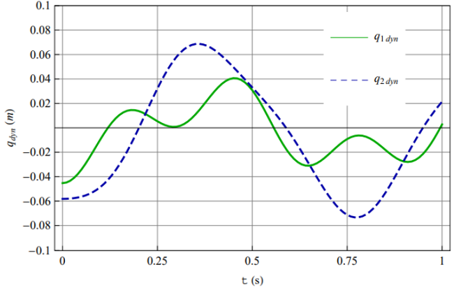 The results of the execution of the program in the form of a diagram of the functions of the free undamped displacement of the crane's main girder, at the locations of the trolleys, are shown in Figure 4.