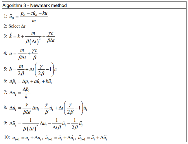 Newmark, N.M. 1959. A Method of Computation for Structural Dynamics. Journal of the Engineering Mechanics Division, 85(3), pp.67-94. Available at: https://doi.org/10.1061/JMCEA3.0000098.