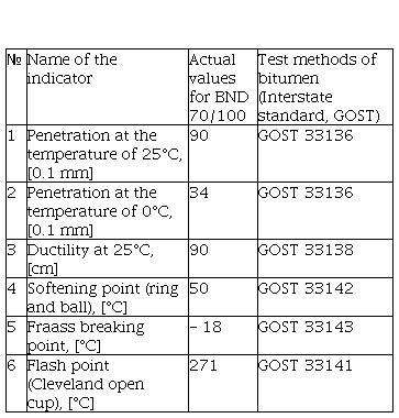 Таблица 1 – Физико-механические свойства битума нефтяного дорожного вязкого окисленного