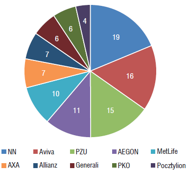 In 2002 in Poland, there were 17 OFEs in operation. In the following years, one could observe a decrease in their number – in 2004: 15, 2008: 14, 2014: 12, and in 2018: 10. In the period under scrutiny, there were changes in the ownership structure (takeovers, mergers), which led to changes in open pension funds’ names. In 2018 the following OFEs were in operation: Nationale-Nederlanden OFE (NN), Generali OFE (Generali), PKO BP Bankowy OFE (PKO), OFE PZU “Złota Jesień” (PZU), Aviva OFE Aviva Santander (Aviva), AEGON OFE (Aegon), AXA OFE (AXA), Allianz Polska OFE (Allianz), MetLife OFE (MetLife), OFE Pocztylion (Pocztylion).